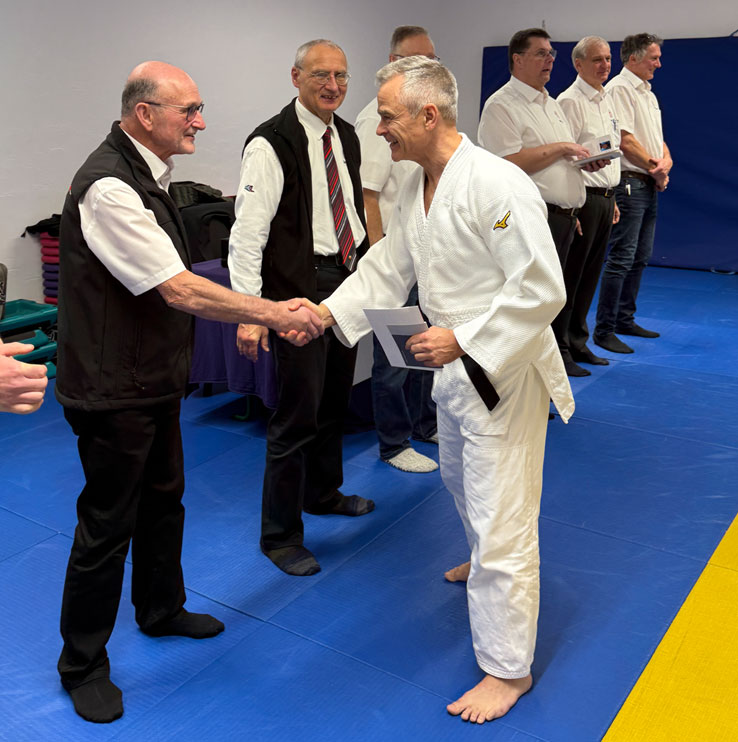 Unzählige gemeinsame Trainingseinheiten, Videoanalysen, das Studium von Kata- und Technik-Videos, das Ausprobieren passender Interaktionen sowie der Besuch von Lehrgängen – unter anderem mit hochrangigen Referentinnen und Referenten – bildeten das stabile Fundament, auf das Markus in der Prüfung zurückgreifen konnte. Am Prüfungstag zahlte sich diese langfristige und strukturierte Vorbereitung aus: Markus durfte den Tag eröffnen, zeigte eine überzeugende Vorstellung und bestand das Nage-waza-Modul souverän.